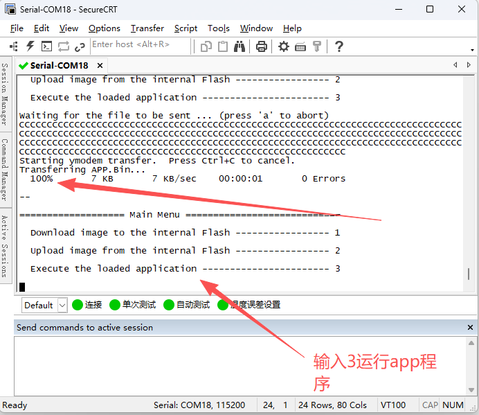 发送完成后输入3运行app程序