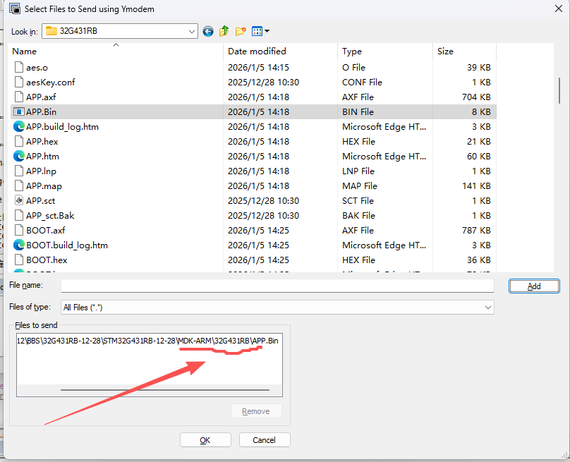 选择APP编译生成的加密Bin文件